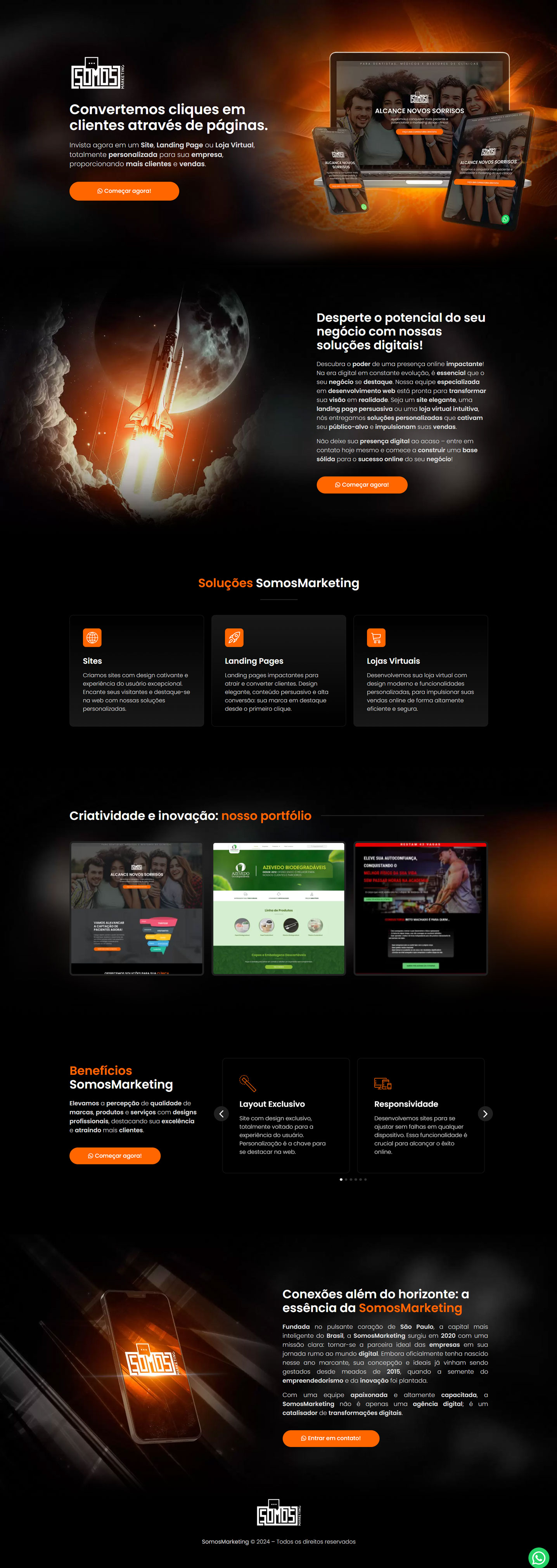 Criamos landing pages focadas em conversão para direcionar visitantes a uma ação específica, como preencher um formulário ou fazer uma compra. Nossas landing pages são projetadas para oferecer uma experiência direta e persuasiva, aumentando as taxas de conversão e alcançando seus objetivos de marketing.